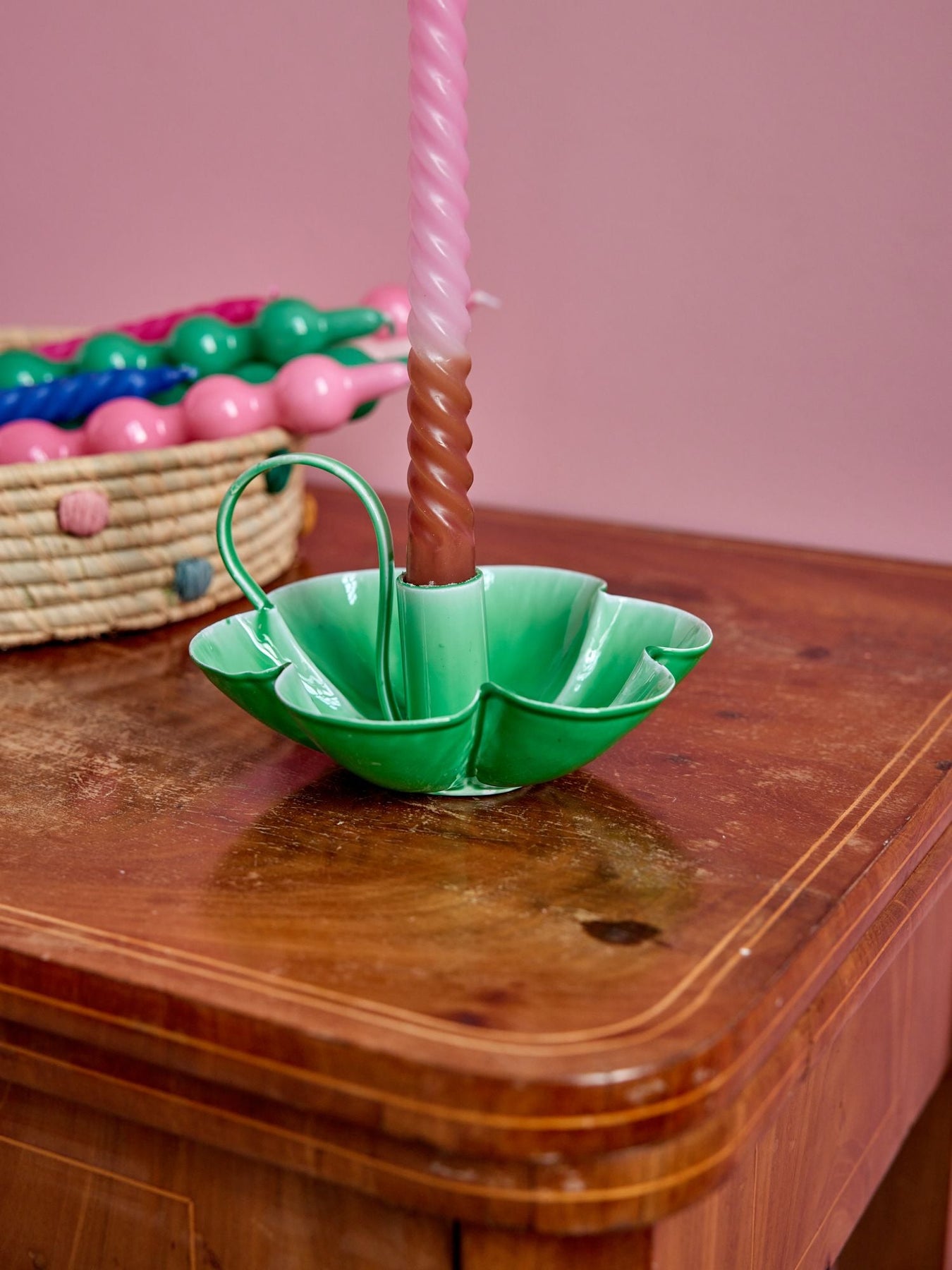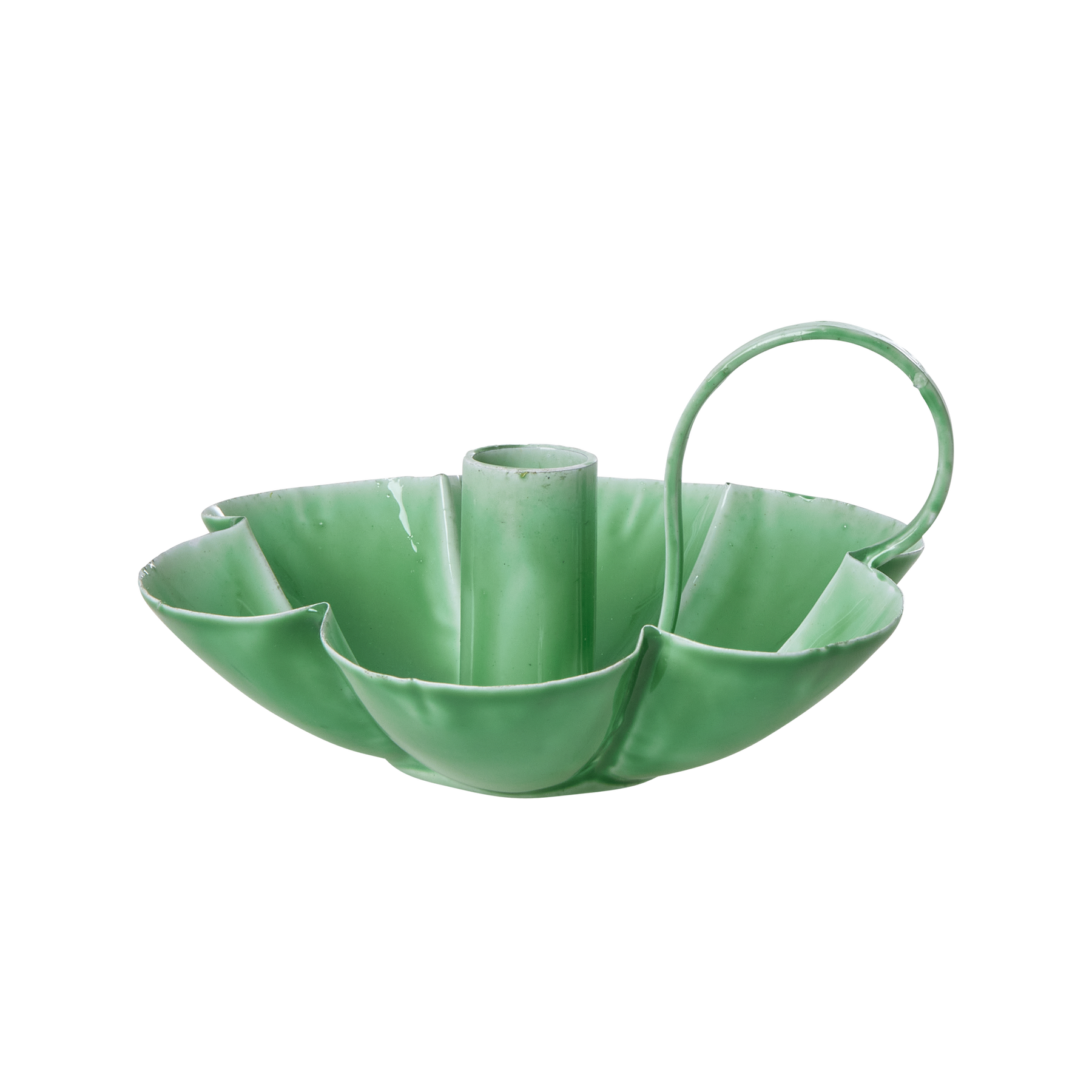 Funky blomsterformet lysestage i den fineste grønne farve og et unikt design, der fanger eventuelt dryppende voks fra dine lys. Det praktiske, lille håndtag gør det nemt at flytte lysestage, så du kan skabe en hyggelig atmosfære, hvor end du vil!