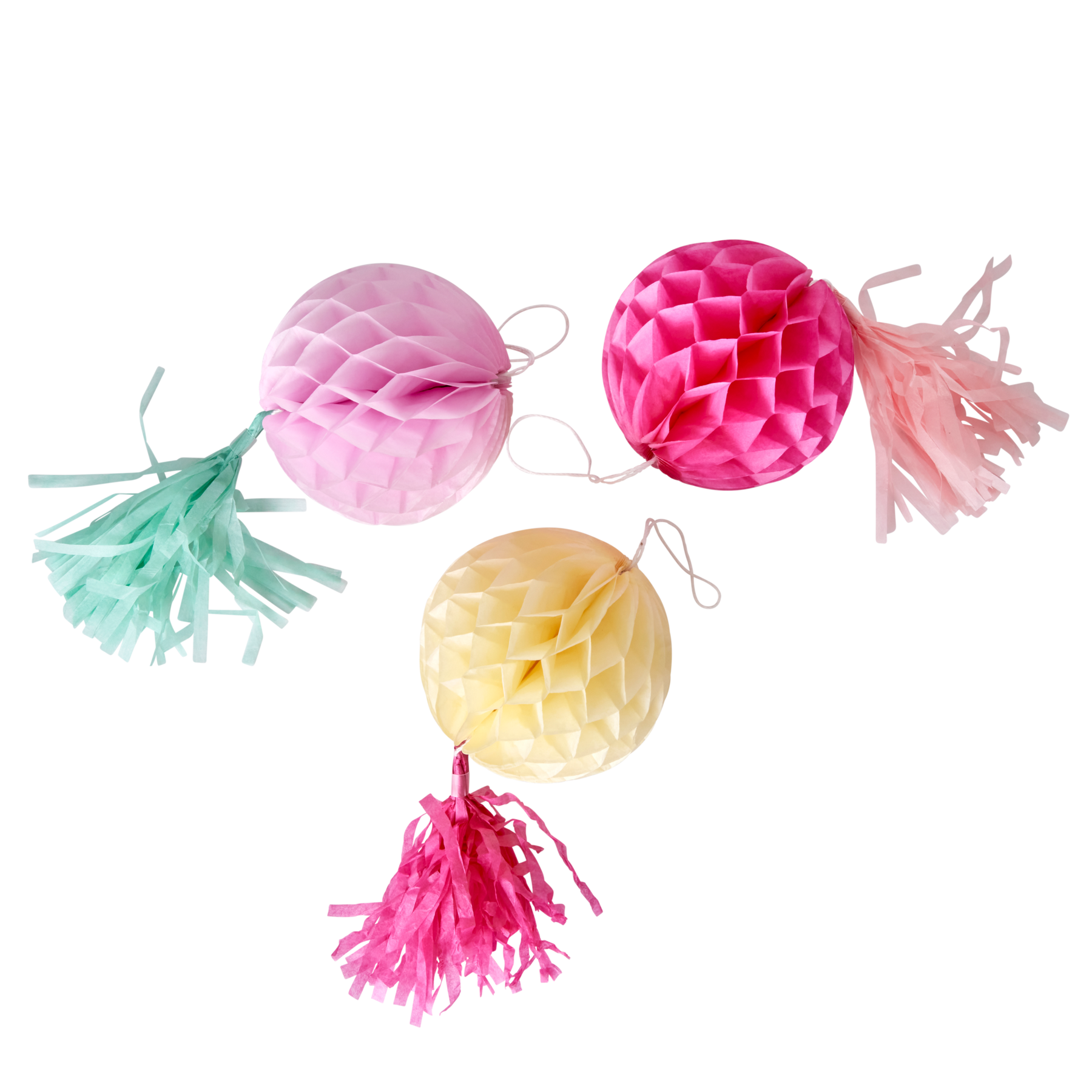 Den perfekte pakke med 3 assorterede papirskugler til din næste fest. De vil med garanti give den perfekte stemning til enhver fest… brug dem som festligt pynt til børnefødselsdagen, flot bordpynt til en hyggelig komsammen med venner eller hæng dem i træerne til din næste havefest. Kuglerne har en diameter på 10 cm. Du kan altid finde flere informationer om materiale og andet under ”Oplev RICE” og ”Produktinformation”. *Produktbeskrivelser og -information er med forbehold for fejl og mangler, ændringer, udsolgte eller udgåede varer.