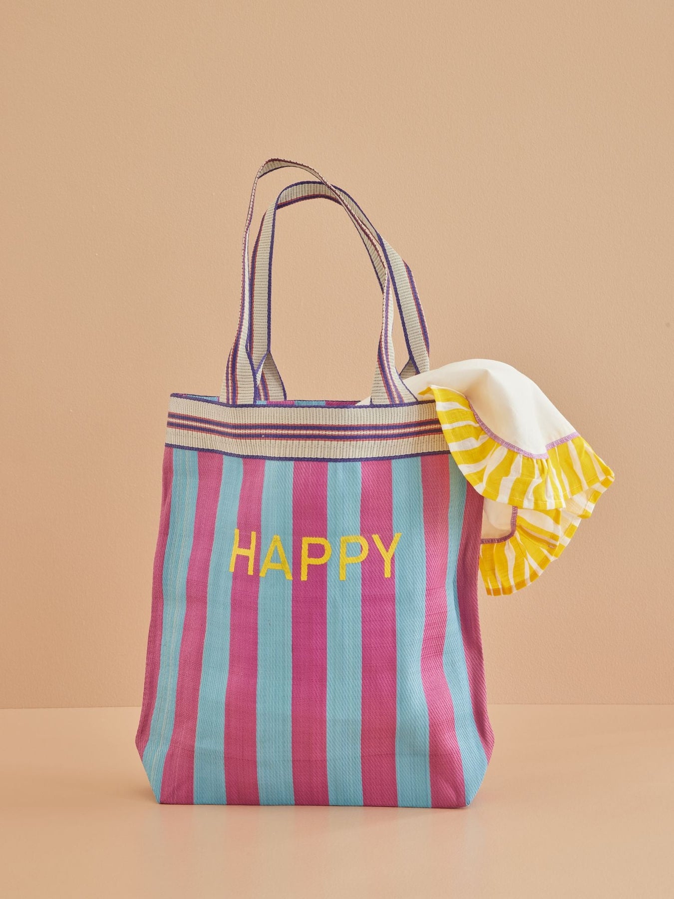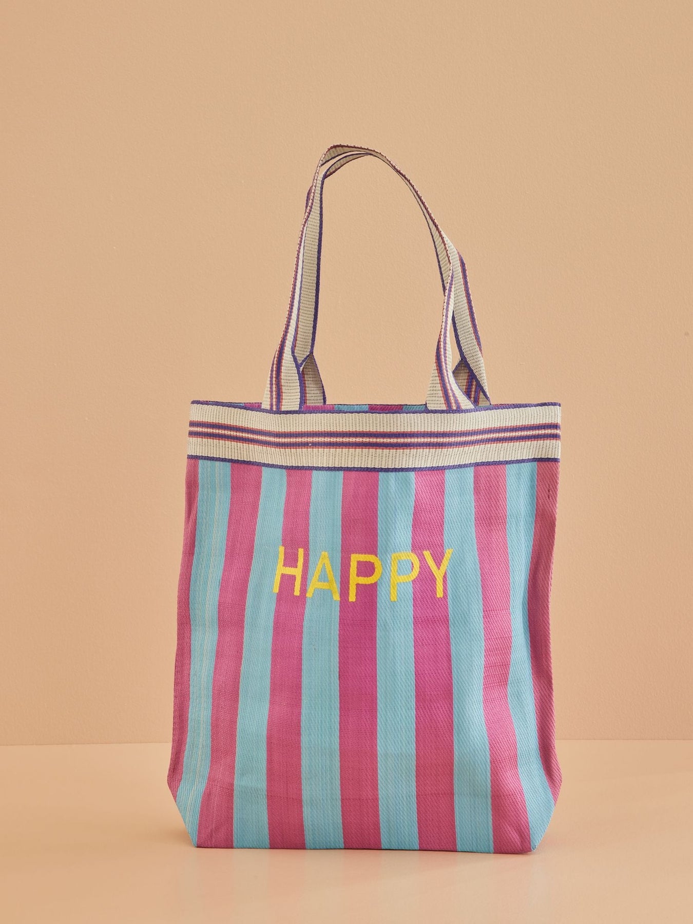 Vores fantastiske shoppingtasker i genbrugt plastik er nærmest uundværlige – super anvendelige og praktiske til hvad end din dag byder på… Da de er lavet af et blødt plastmateriale, kan de nemt foldes og bøjes, så du kan have det med på farten… super smart hvis du pludselig har glemt gulerødderne til aftensmaden! De kommer i tre forskellige designs, som hver især, med deres flotte farver, vil krydre din hverdag med en smule hverdagsmagi.