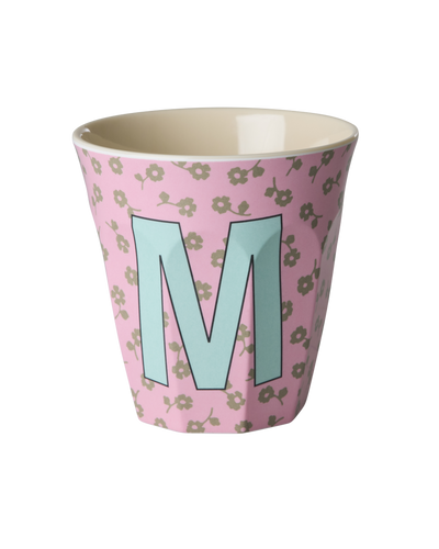 Medium Alphabet Cup - Soft Pink - N - Flowers