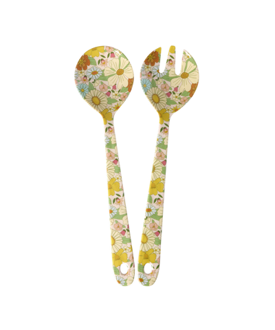 Melamin Salat Besteck - Dunkles Pink - Flower Power Print - 2er Set