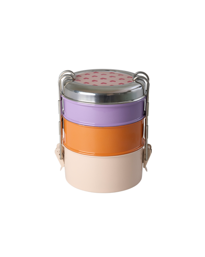 Round Stainless Steel Lunch box - Multicolor - Heart Print