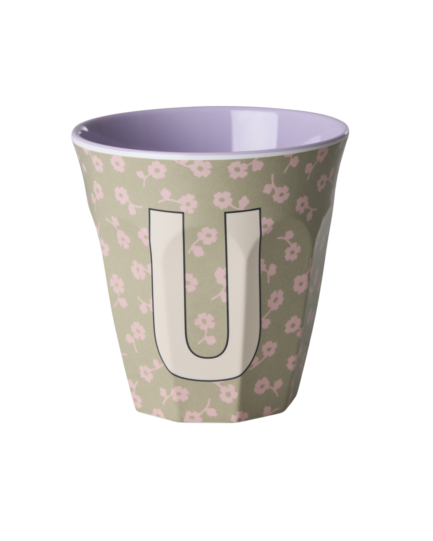 Medium Alphabet Cup - Dark Sand - U - Flowers