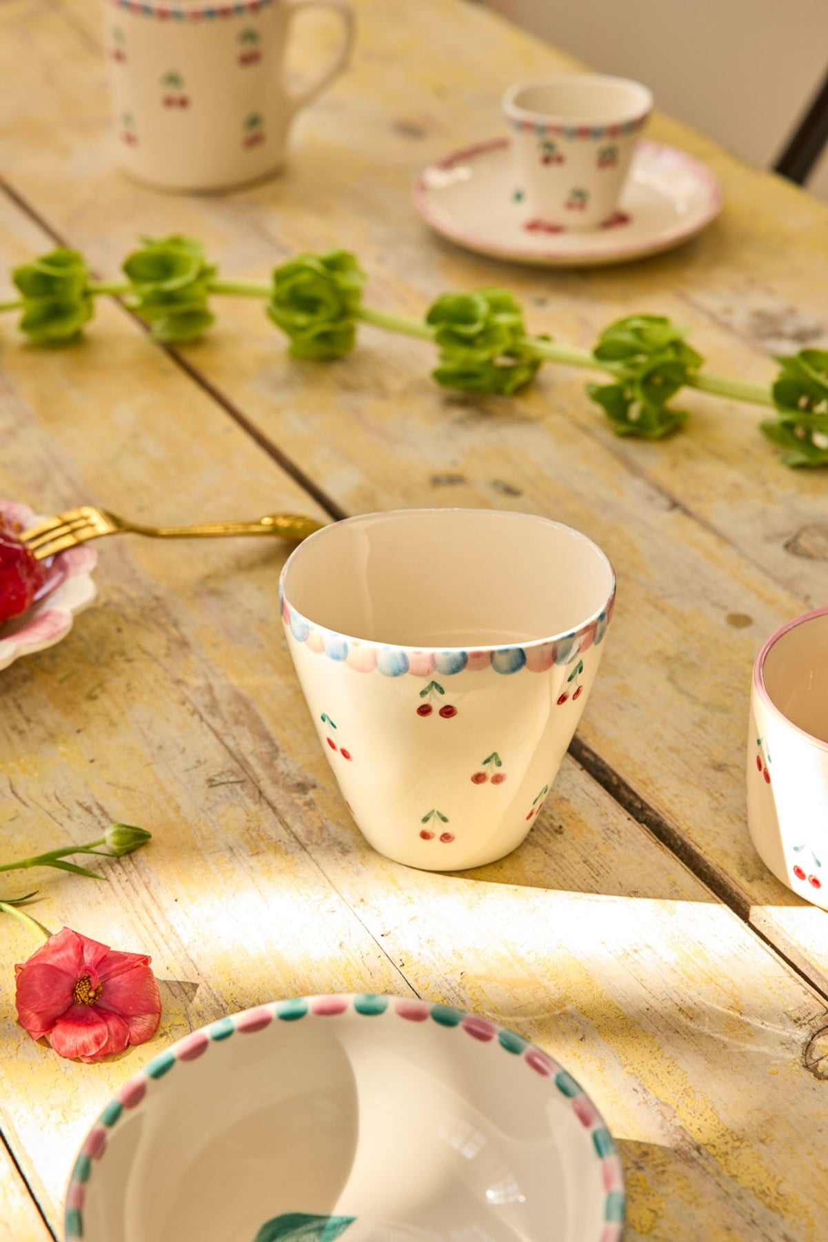 Enjoy your morning coffee in this oval ceramic mug with hand-painted motifs of sweet cherries. The cup is hand-painted by a group of amazing Portuguese women, making each one truly unique. We find it so charming!