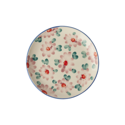 Ceramic Dinner Plate - Pink - Hand-painted White Flower Vine