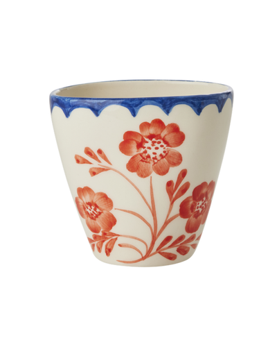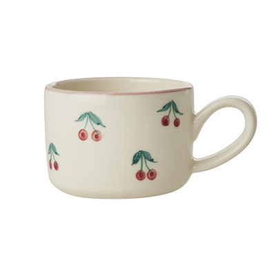 Oval Ceramic Cup - Off White - Hand-painted Cherries