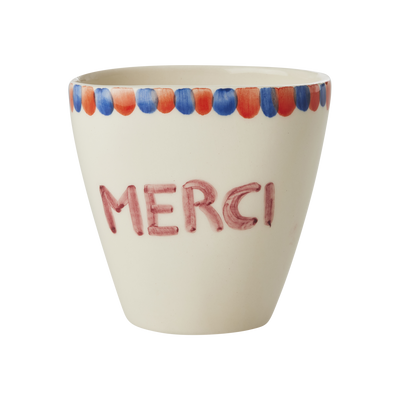 Ceramic Cappuccino Cup - White - Hand-painted MERCI
