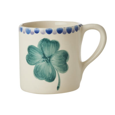 Oval Ceramic Cup - Off White - Hand-painted Good Luck Clover