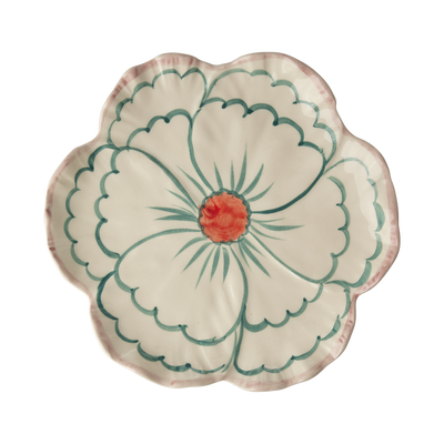 Ceramic Dinner Plate - Off White - Hand-painted Green Flower Vine