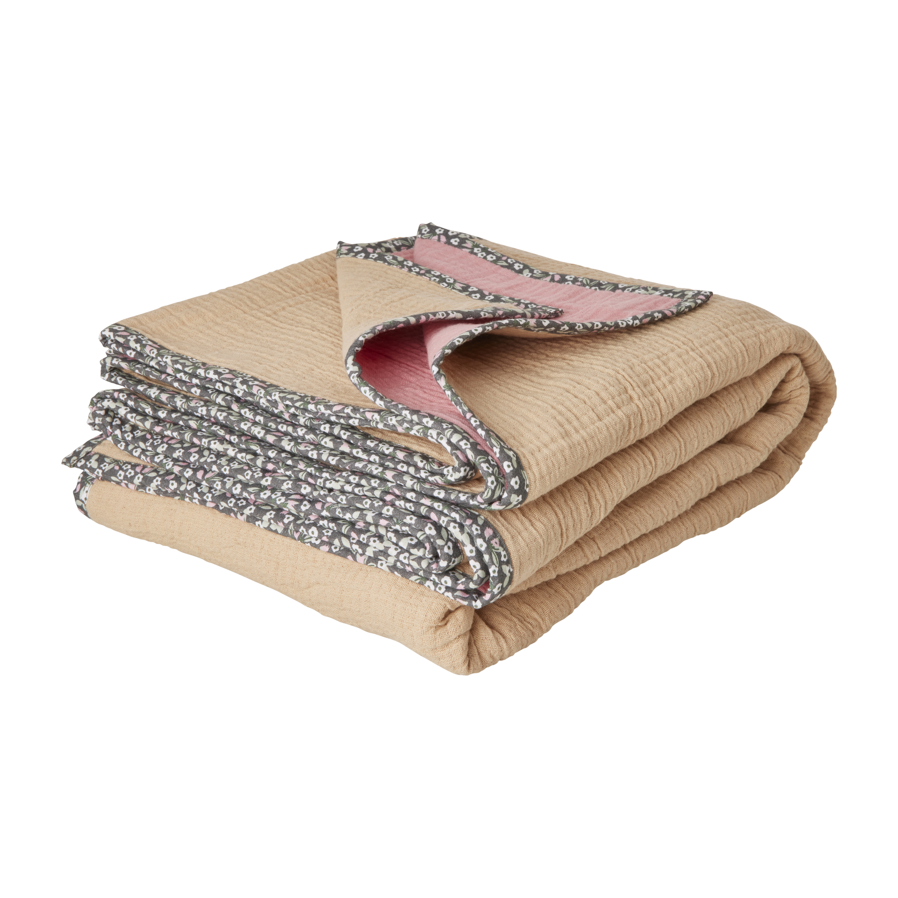 Nos encanta este preciosa y suave manta de color beige y rosa suave con bordes estampados de flores. Es perfecta para relajarte en el sofá, para abrigarte en una noche de verano cuando estás afuera o como una bonita cubrecama ... ¡Las opciones son infinitas! La manta mide 140 x 200 cm. Para asegurar una larga y feliz vida a tu manta, te recomendamos que la laves a 30 °C y no la metas en la secadora.
