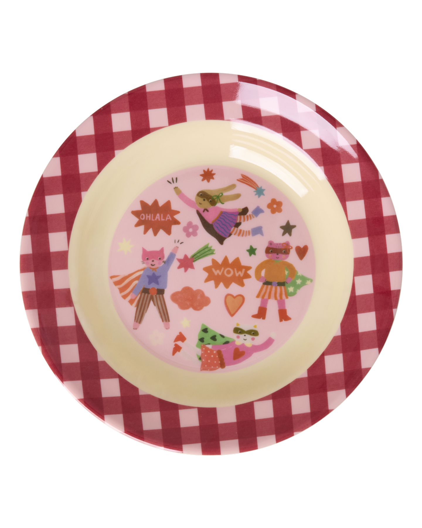 Wonderful kid’s melamine bowl with the pink “Hero” print. Melamine is durable and ideal for daily use due to its strength and easy cleaning. The material makes the bowl practical for a bit of everything – both indoor and outdoor! Please note that the product is not suitable for the microwave.