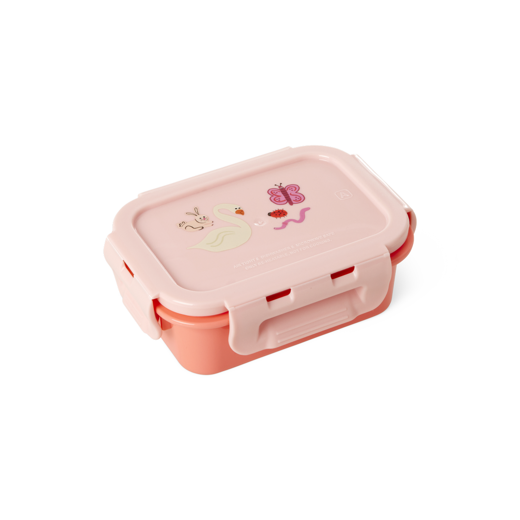 ¡Tu almuerzo será aún mejor con nuestra bonita pequeña fiambrera rosa! Tiene una tapa de color rosa suave con un estampado de un dulce cisne y una mariposa - ¡perfecto para mantener tus comidas organizadas y frescas! Recuerda que debes quitar la tapa antes de usarla en el microondas.