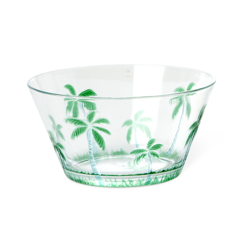 Bol acrylique funky avec des palmiers vert. Décoratif, il attirera tous les regards en toute occasion, car il est super pratique aussi bien à l’intérieur qu’à l’extérieur.