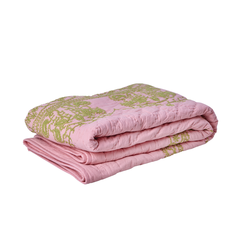 Blottissez-vous dans notre douce couverture rose ornée d’une délicate broderie verte. Confectionnée avec amour et souci du détail, cette pièce douillette ajoute une touche de couleur et de chaleur à votre intérieur. Elle est parfaite pour les soirées fraîches ou simplement lorsque vous souhaitez vous envelopper de plus de confort. Pour garder ses belles couleurs, n’oubliez pas de la laver à une température ne dépassant pas 30 °C et de la laisser sécher à l’air libre.