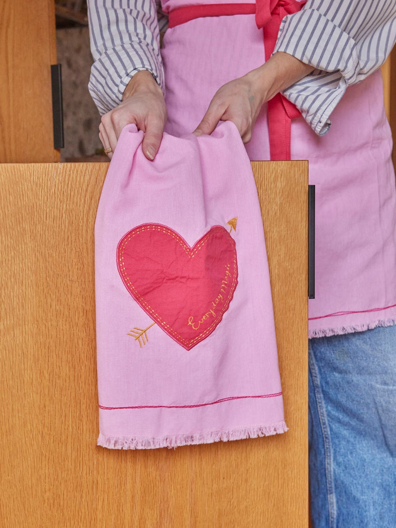 Mettez une touche d’Everyday Magic dans vos tâches ménagères grâce à ce torchon rose et son cœur rouge transpercé d’une flèche dorée. Il a été lavé avec des enzymes pour qu’il soit plus doux, réduire l’apparition de bouloches, et lui assurer un meilleur fini. Parfait au quotidien, il est lavable en machine à 40 °C.