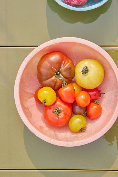 Superbe et grand bol rose pâle en résine avec un joli motif. Le motif est réalisé à la main, vous ne trouverez donc jamais deux bols complètement identiques, ce que nous trouvons absolument charmant. Utilisez-le pour tout ce que vous voulez... pour une salade, des chips... ou même simplement comme vide-poche.