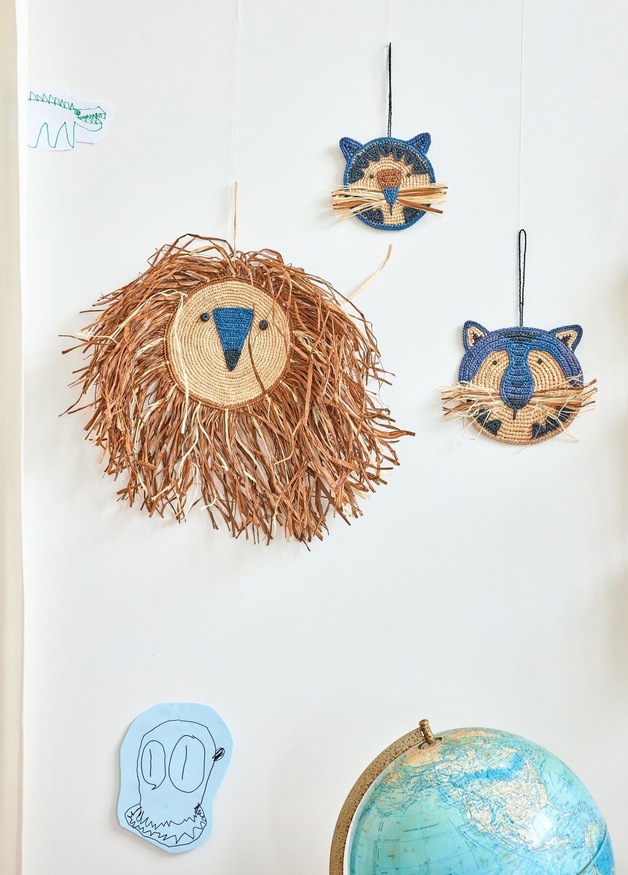 Décorez la chambre des enfants avec cette adorable déco murale. Fabriquée à la main en raphia, un matériau naturel et durable, elle est conçue pour stimuler l’imagination des tout-petits. Lion curieux, chouette ingénieuse ou créature mythique aux pouvoirs secrets ? À vous de décider !