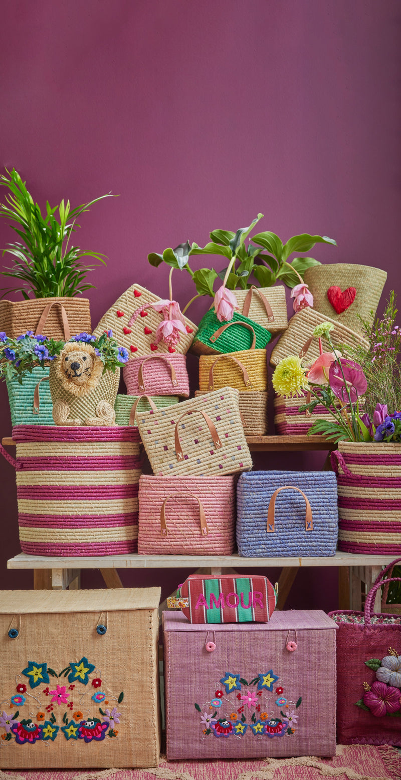 Comme le raphia est un matériau naturel et que les articles sont fabriqués à la main, leur taille peut varier tout comme leur couleur. Cela signifie que deux articles ne seront jamais totalement identiques – ce qui fait partie de leur charme. Exposé à la lumière directe du soleil, les couleurs risquent de s’éclaircir avec le temps. Et il vaut mieux éviter tout contact avec un liquide car les couleurs pourraient déteindre.