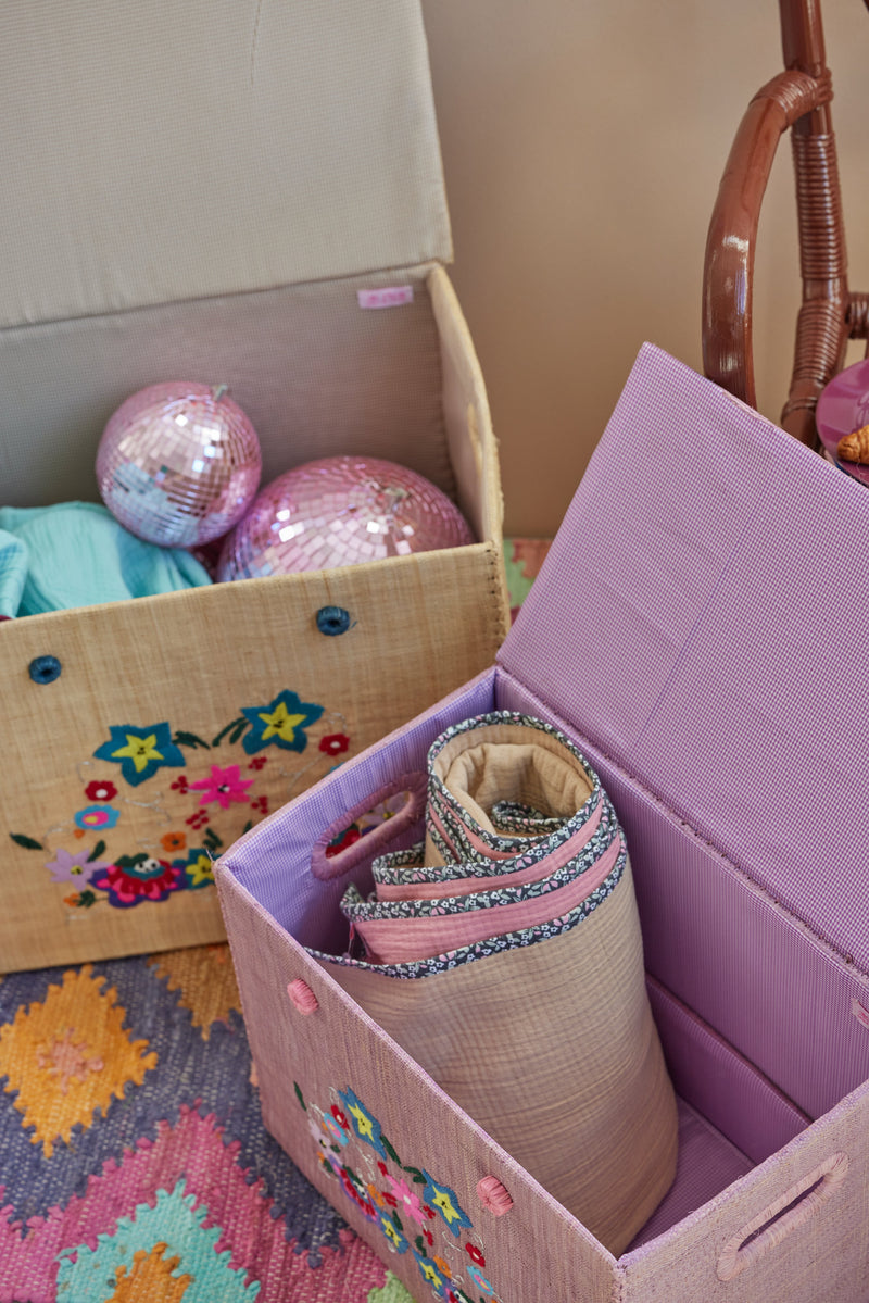 Comme le raphia est un matériau naturel et que les articles sont fabriqués à la main, leur taille peut varier tout comme leur couleur. Cela signifie que deux articles ne seront jamais totalement identiques – ce qui fait partie de leur charme. Exposé à la lumière directe du soleil, les couleurs risquent de s’éclaircir avec le temps. Et il vaut mieux éviter tout contact avec un liquide car les couleurs pourraient déteindre.