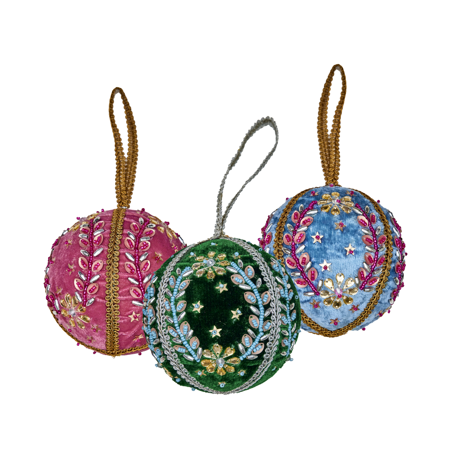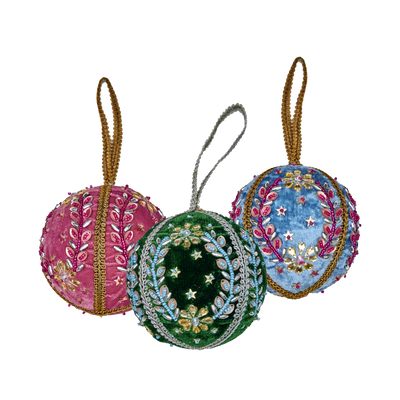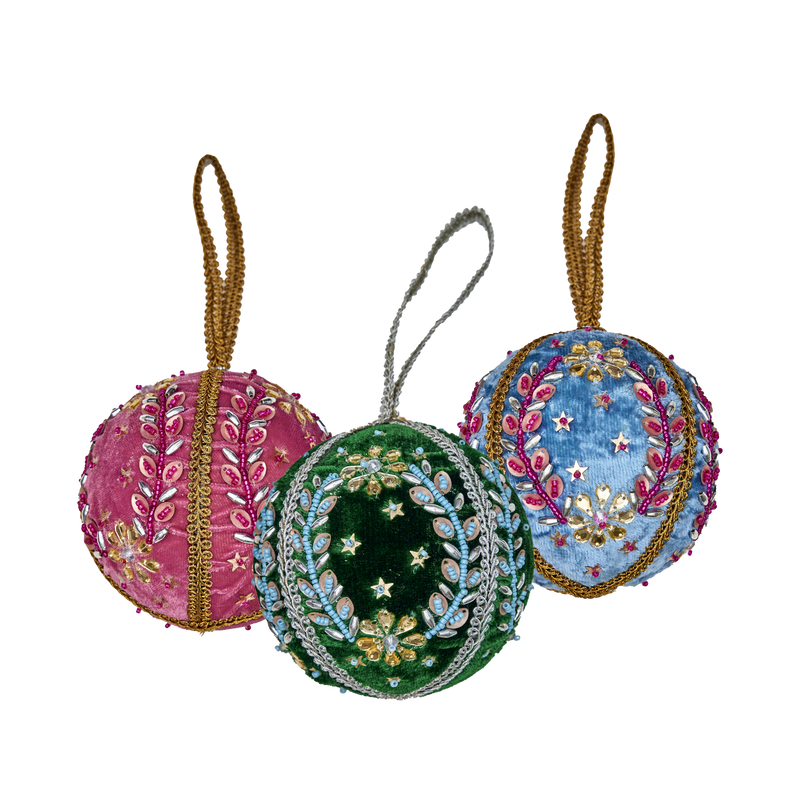 | Matériau | Tissu en velours, perles en verre et en plastique, cuivre, paillettes, rembourrage en polyuréthane |
