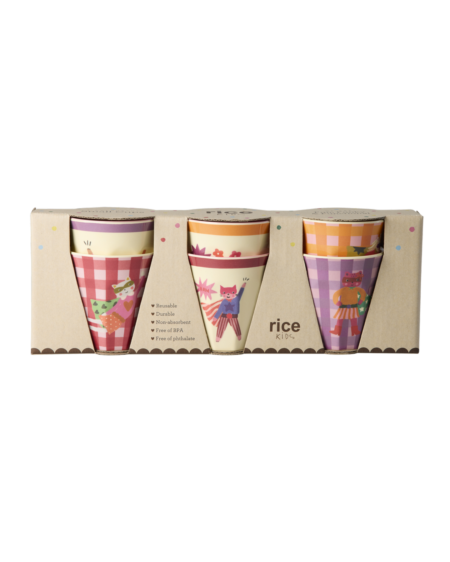 Meet your new favorite superheroes – capes, masks, and mighty powers all wrapped up in this box of 6 small melamine cups! Melamine is durable and ideal for daily use due to its strength and easy cleaning. The cups are super practical for both kids and adults and can handle up to 160 ml! Please note that the product is not suitable for the microwave.