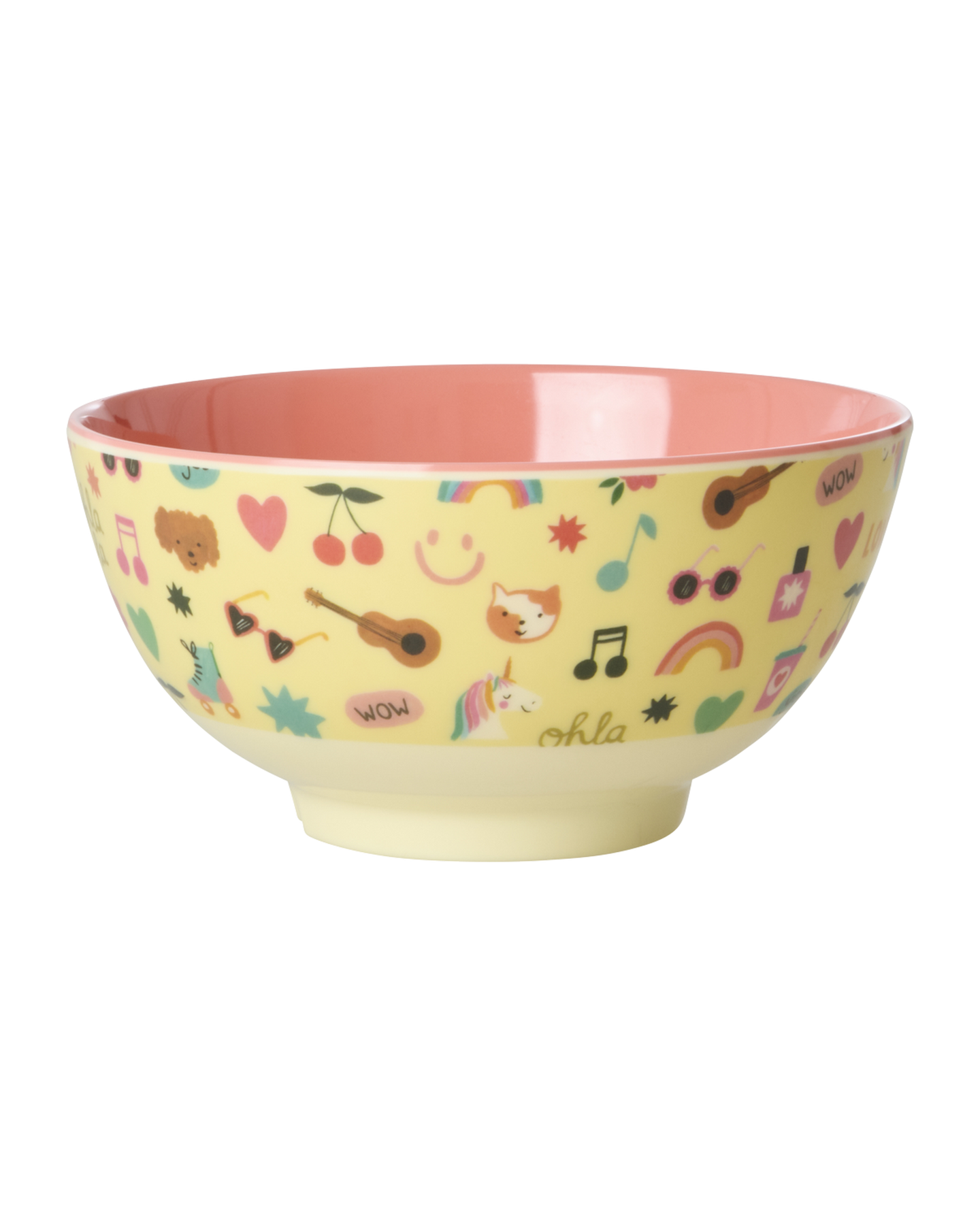 Medium Kids Bowl - Soft Yellow - Unicorn Love Print