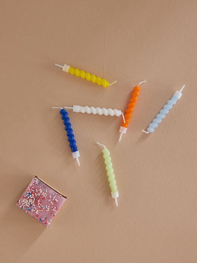 Adoriamo queste splendide e festose candeline per torta. Le graziose candele sono disponibili in un design attorcigliato in colori assortiti in tonalità blu. Faranno in modo che la festa cominci! Le candeline aggiungono un po' di magia quotidiana in più ai tuoi momenti speciali. Con le diverse opzioni di colore e stile puoi creare la tua personale combinazione! Puoi sempre trovare maggiori informazioni sui nostri materiali in "Esperienza RICE" e "Informazioni sul prodotto". *Le informazioni sui prodotti possono essere soggette a errori, modifiche o indicazione di esaurimento.
