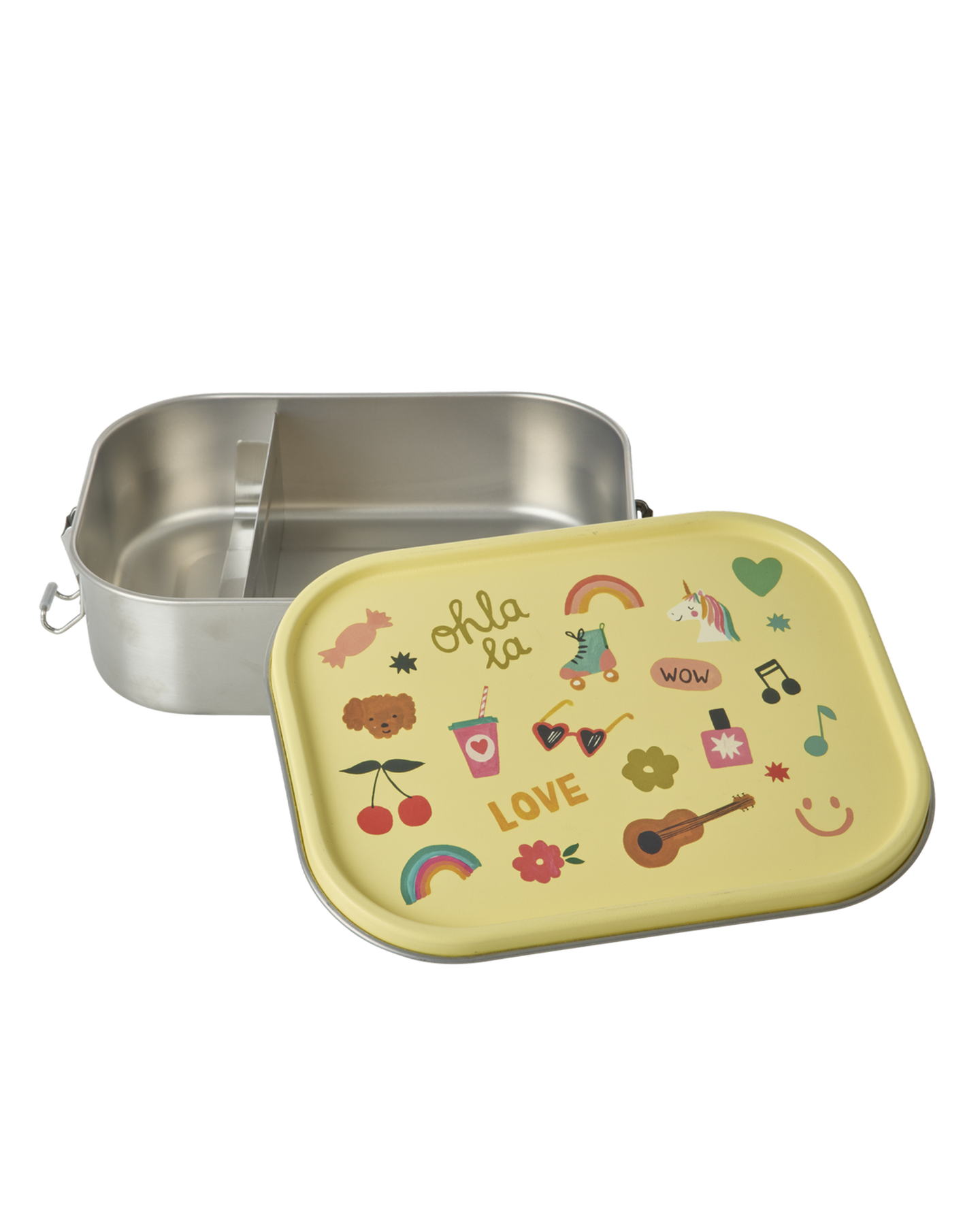 Make lunchtime even better with our large, stainless steel lunchbox! It features a yellow lid with the fun “Unicorn Love” print and a movable divider – perfect for keeping your meals organized and fresh!