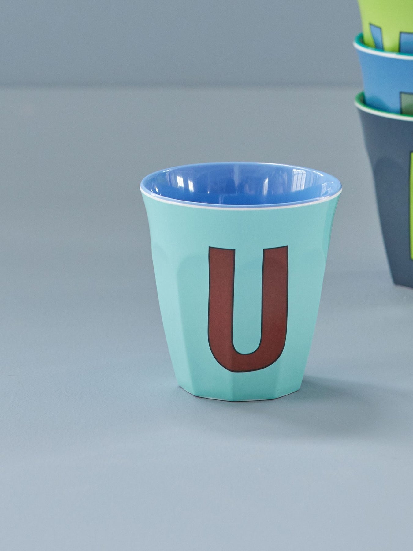 Onze popularie beker van melamine met letters. Mix, combineer en schrijf een bericht met de letters van de bekers. Of maak het de famlie makkelijk en zorg dat ieder zijn eigen beker heeft. Hier hebben we de letter U. De beker is een favoriet product, en voor een goede reden. Het kan voor alles gebruikt worden - om te drinken, voor pennen of voor een picknick. Alleen je fantasie stelt de grenzen. Houd er rekening mee dat deze producten niet geschikt zijn voor de magnetron.