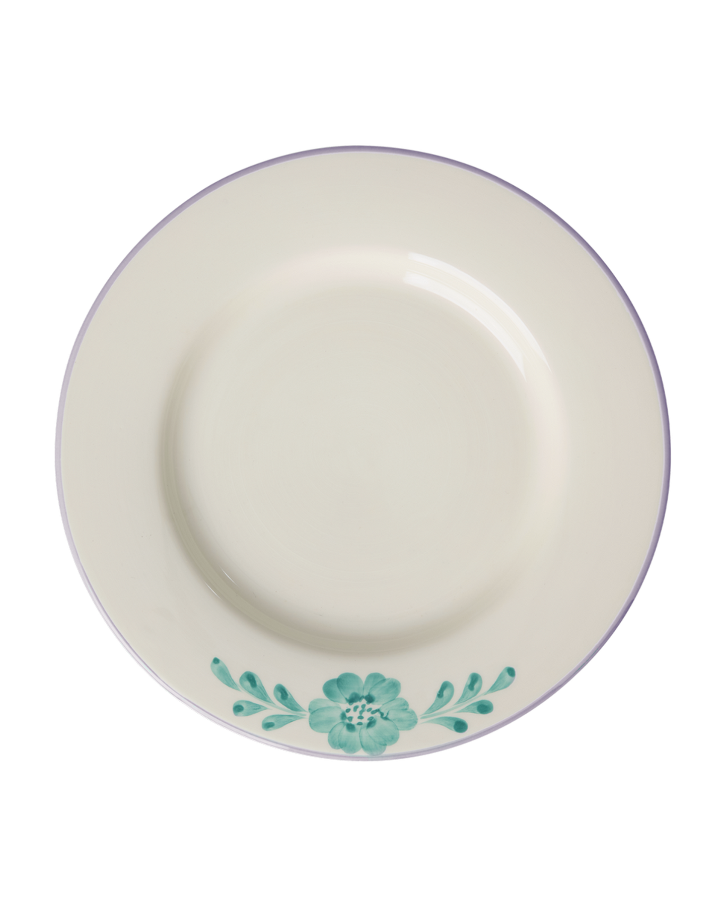 Ceramic Dinner Plate - Off White - Hand-painted Green Flower Vine