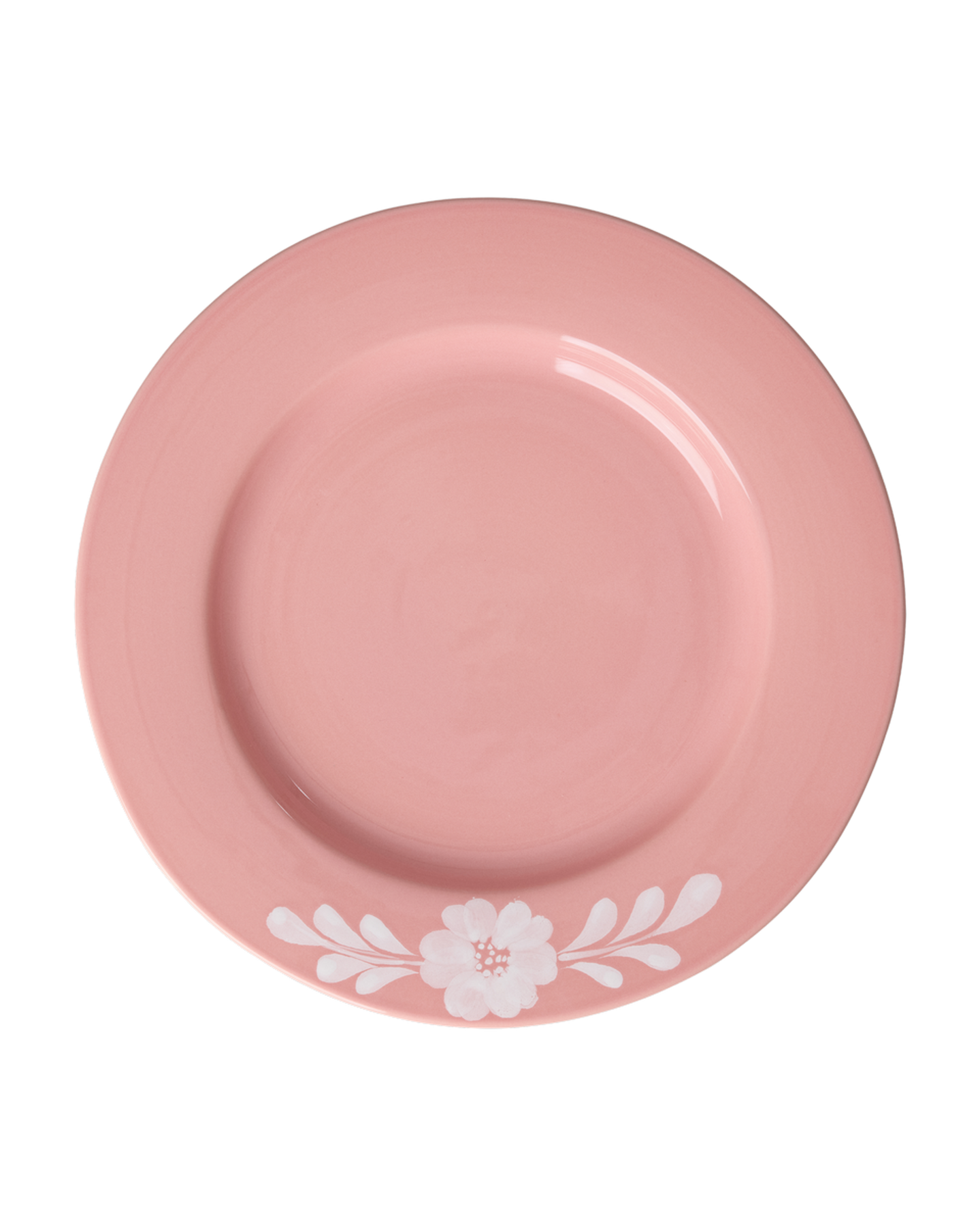 Set a beautiful table with this lovely floral plate or use it as a pretty serving platter. It's enriched with hand-painted details in white and pink, painted by fantastic women in Portugal. Therefore, no two plates are alike; each one is completely unique.