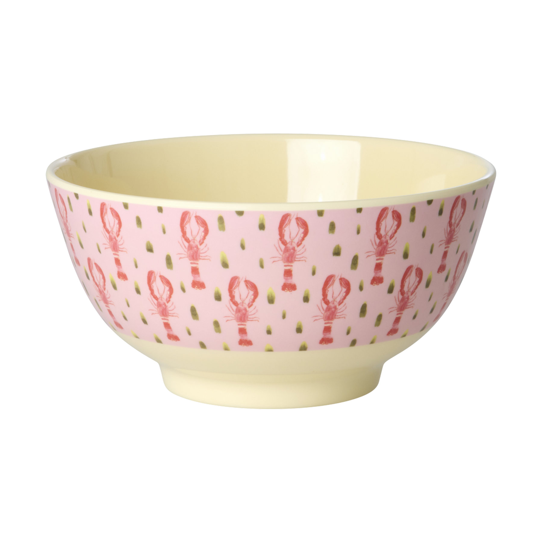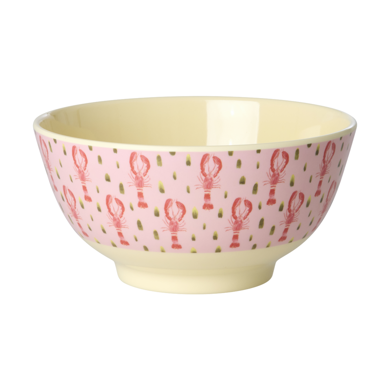 Funky, medium melamine bowl with the fun Pink Lobster print. Melamine is durable and ideal for daily use due to its strength and easy cleaning. It doesn't absorb color or taste from food – making it perfect for breakfast, soup, a small flower or candy on a Friday night! Please note that the product is not suitable for the microwave.