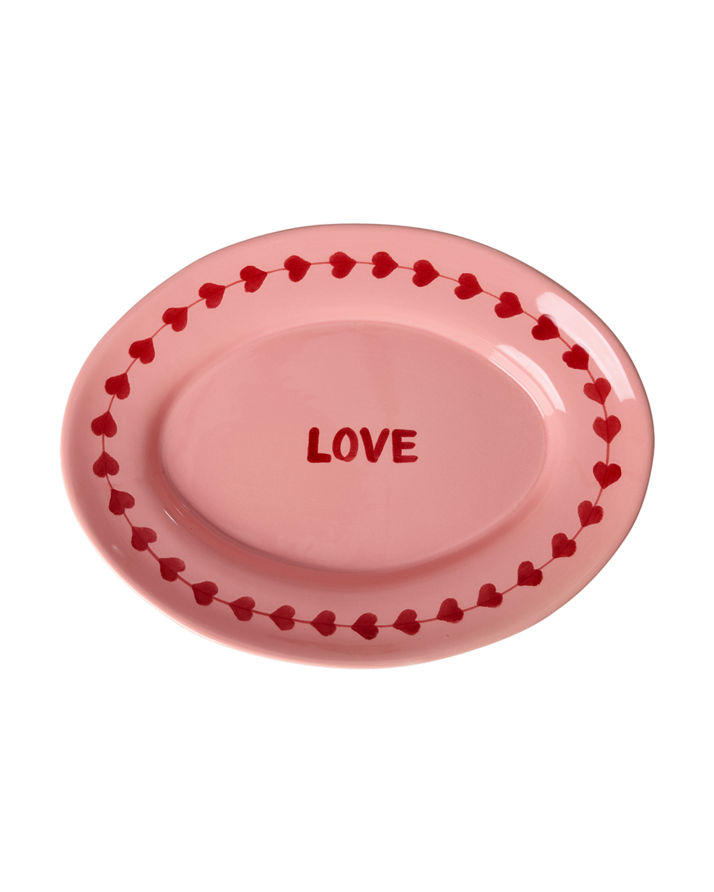 Serve your dinner on a beautiful, ceramic serving platter. It's enriched with hand-painted heart details and the word “LOVE” written in the middle. All painted by talented women in Portugal; making each platter truly unique. It measures W26 x L35 cm, so there is plenty of room for both colorful salads and delicious treats.