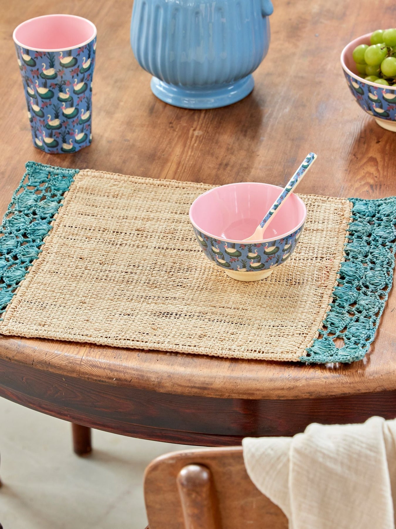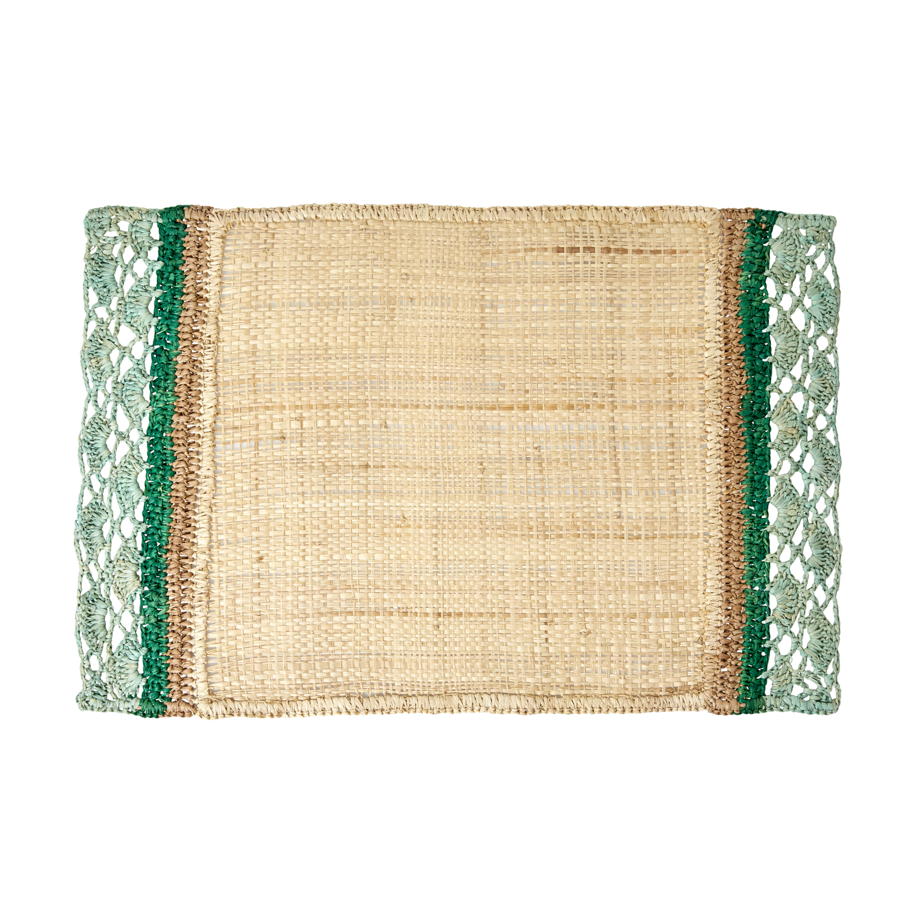 This lovely raffia placemat with elegant, green crocheted edges will for sure add a cute and personal touch to your table setting. The placemat also comes in pink and coral... choose your favorite or mix and match.