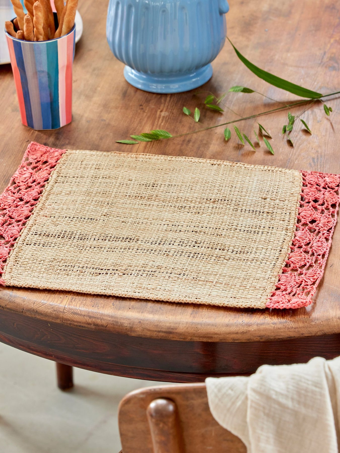Because raffia is a natural material and the products are handmade, each product can vary in size and this variation is reflected in the coloring as well. This means two products are never quite alike, which we see as part of the charm. If exposed to direct sunlight, the colors will fade over time. The color of the raffia products might rub off if exposed to liquids.