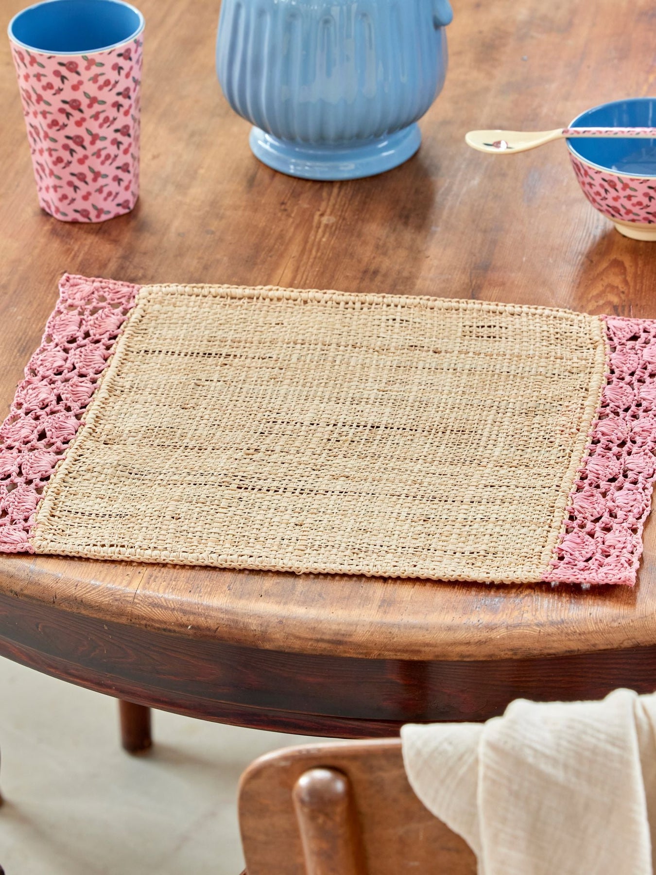 Because raffia is a natural material and the products are handmade, each product can vary in size and this variation is reflected in the coloring as well. This means two products are never quite alike, which we see as part of the charm. If exposed to direct sunlight, the colors will fade over time. The color of the raffia products might rub off if exposed to liquids.
