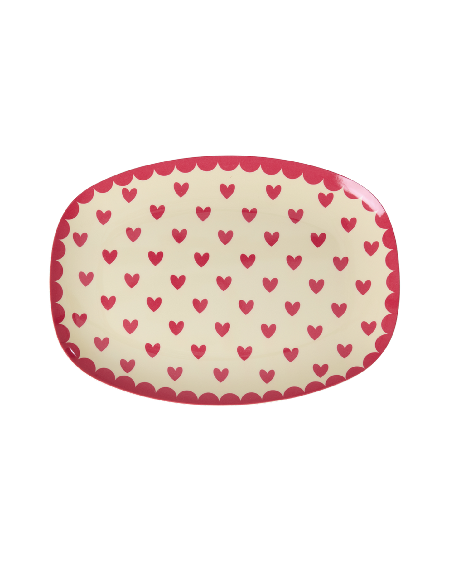 Our small, rectangular melamine plate in a red Heart print – perfect for cake, fruit or an afternoon snack! The durable material melamine makes the plate ideal for daily use due to its strength and easy cleaning. Please note that the product is not suitable for the microwave.