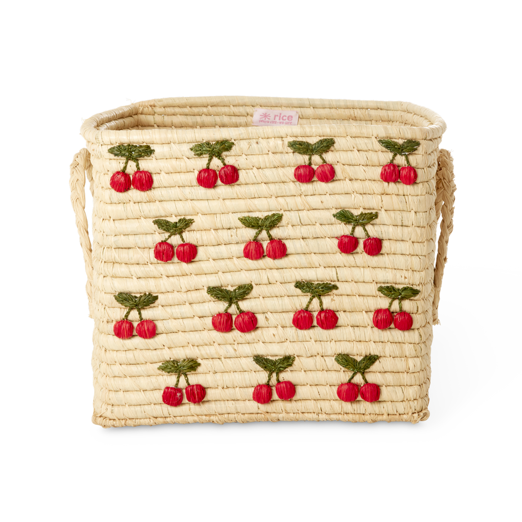 Square Raffia Basket - Nature - Small Cherries All Over Design